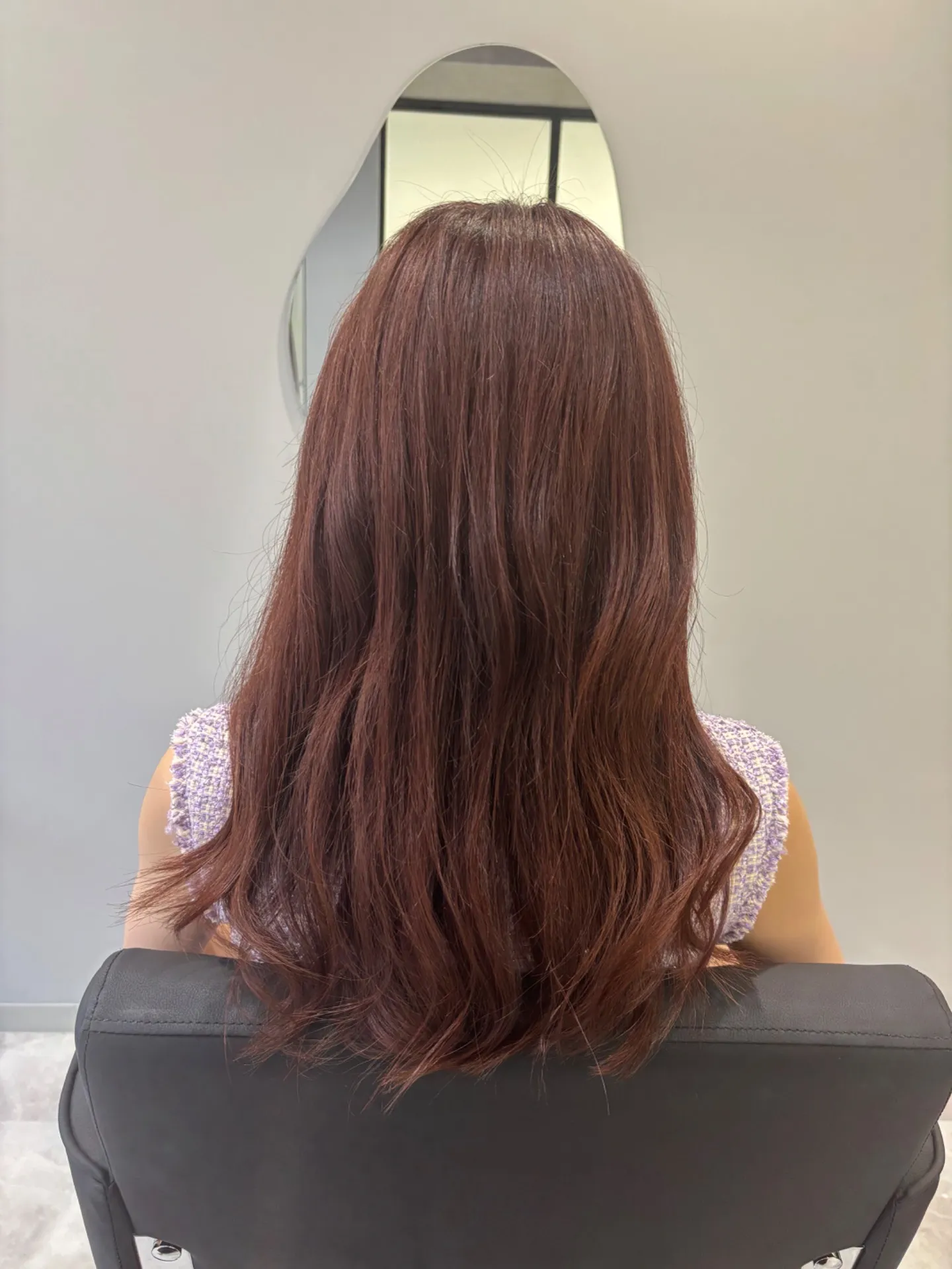 ほんのり赤みを感じる色味で、髪をつややかに見せてくれるのがポイントです。
