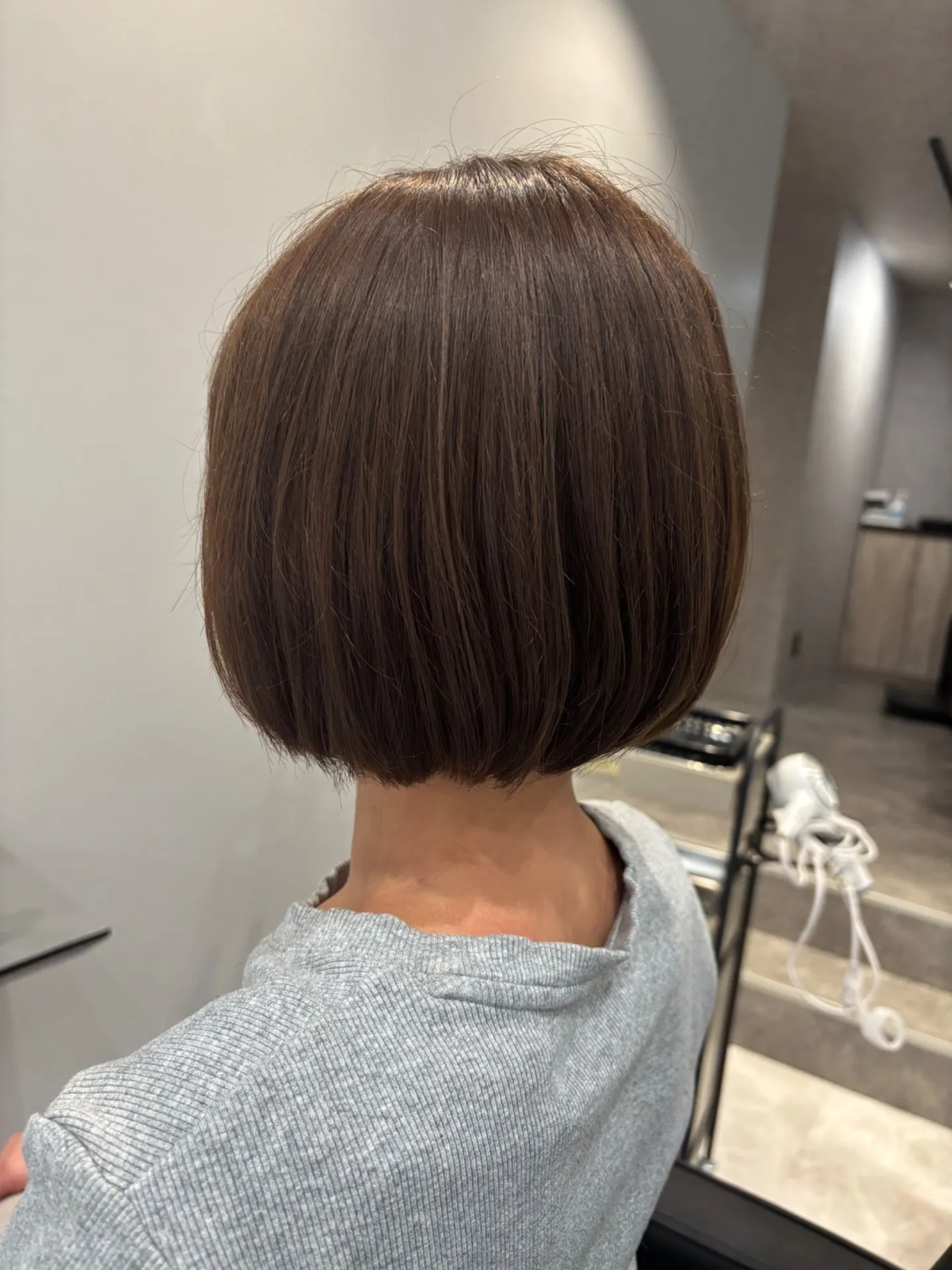 丸みのあるシルエットで首元がすっきり見える、大人ショートボブです。