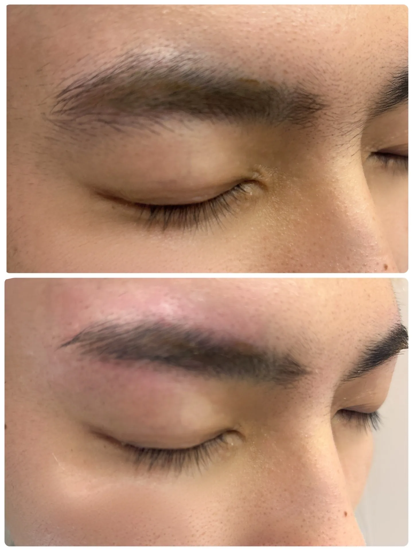 Beforeの状態では、もともとしっかりした毛量と自然な形はあるものの、上や周りにうっすら産毛が残っていて、全体に少しぼんやりした印象でした。輪郭が分かりにくくなることで、顔全体のメリハリも出にくくなりがち。