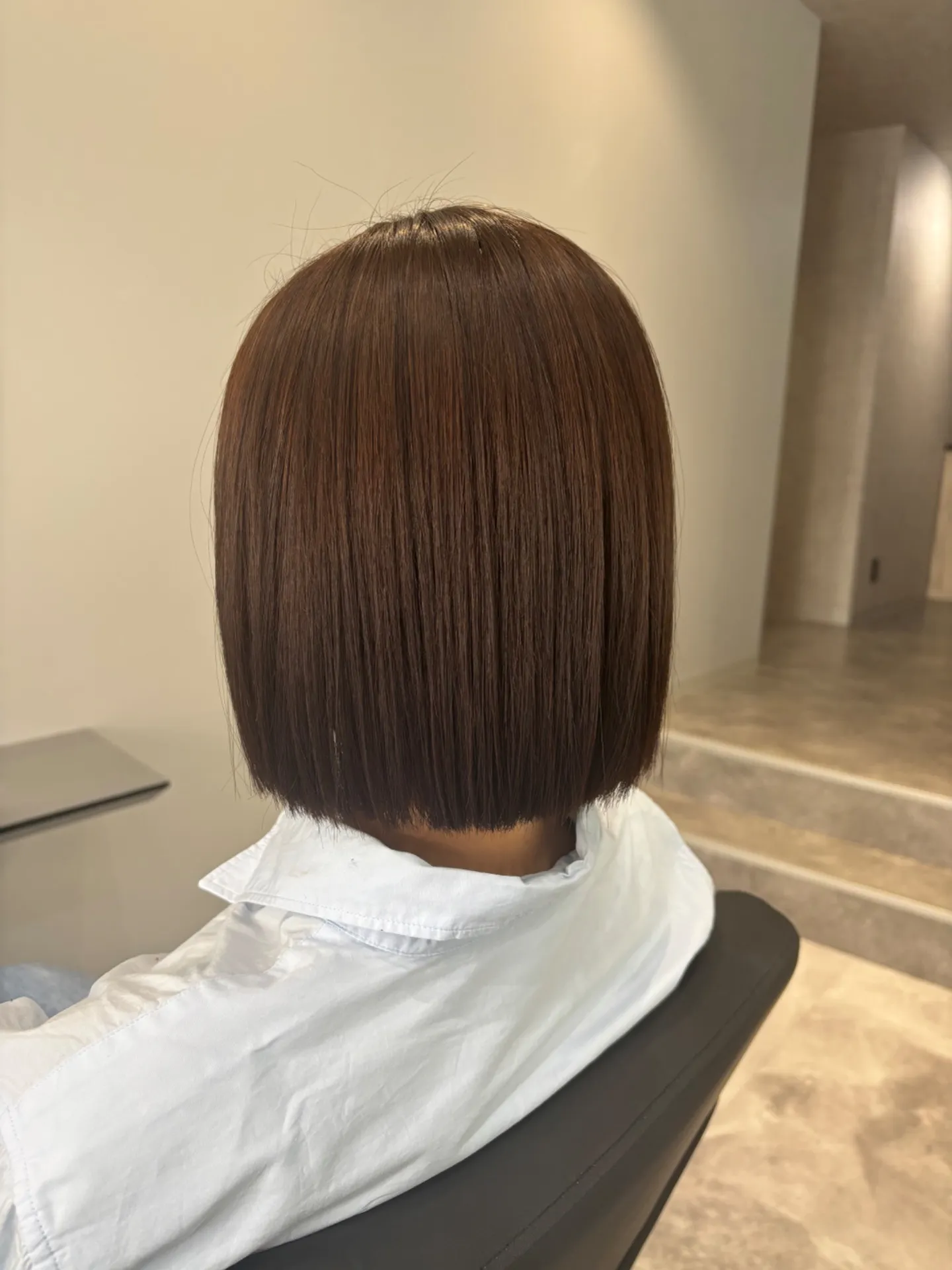自然なまとまりとツヤ感のあるボブスタイルです。